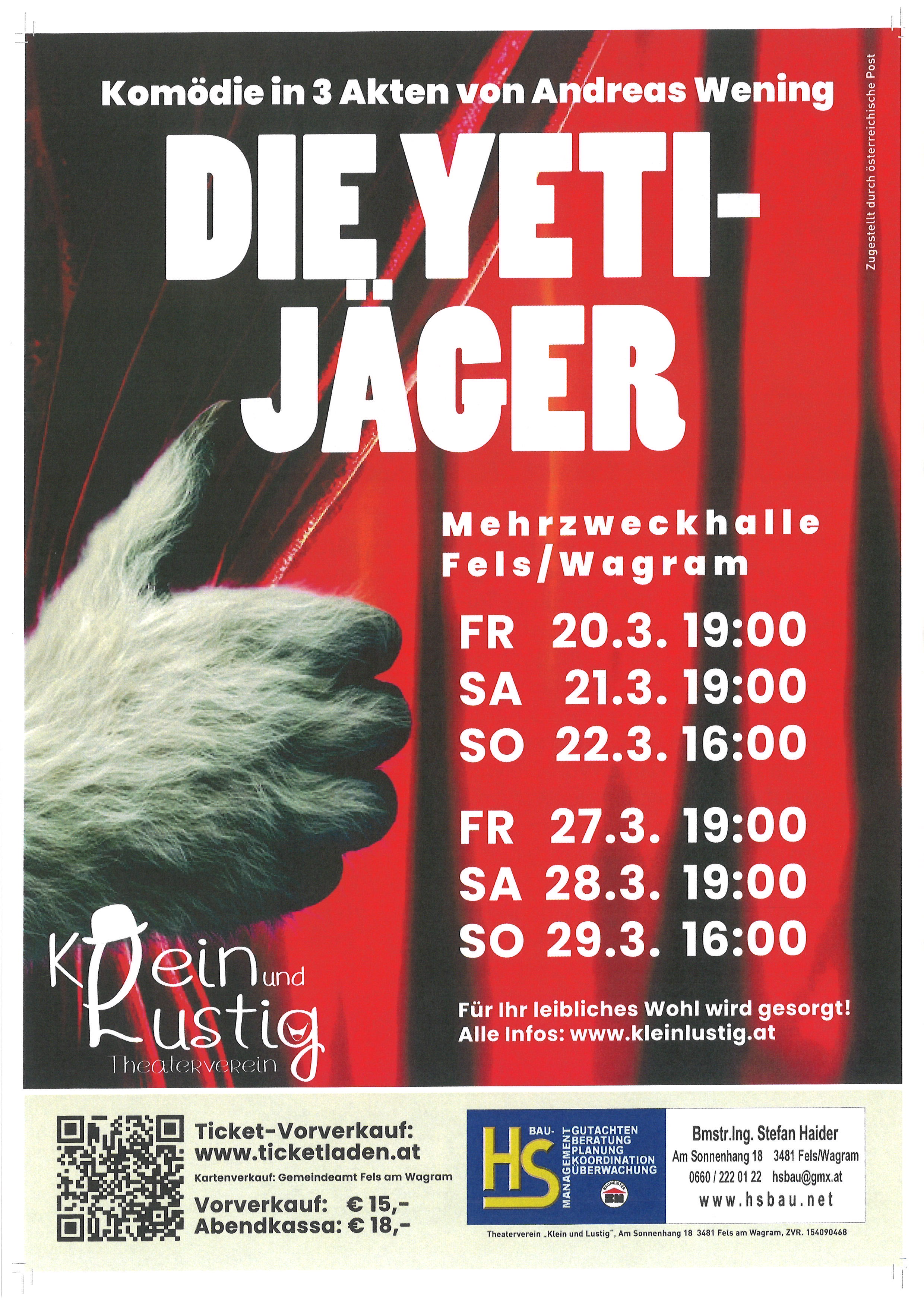 Karten + Info: www.theaterverein-schrattenberg.at. 02555 / 24 167